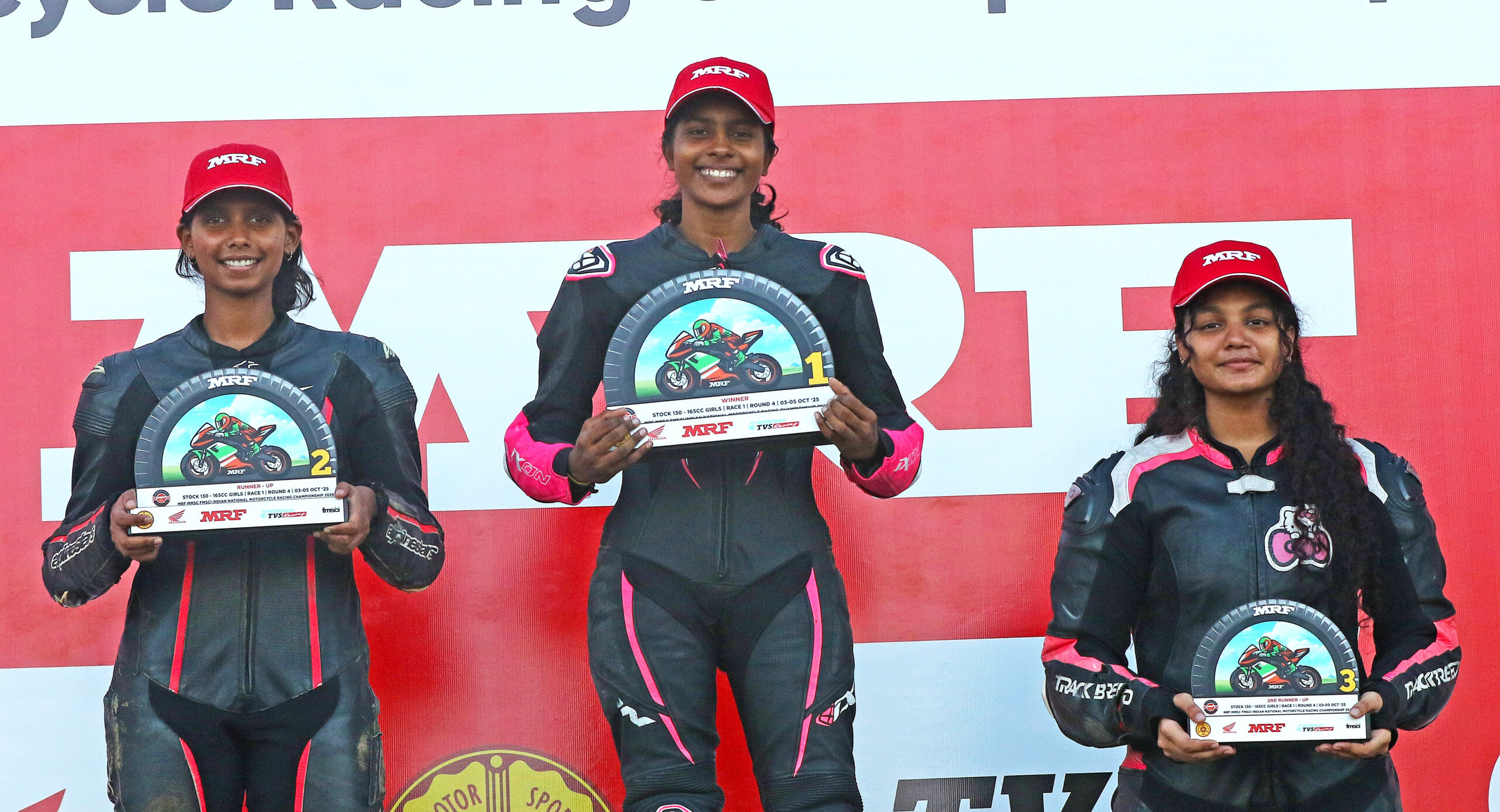 Chennai, October 4: Chennai’s Jagathishree Kumaresan (One Racing) scripted a fairytale victory starting from last on the grid in the Girls (Stock 165cc) to overshadow a commanding win by Rahil Pillarisetty (RACR Castrol Power1) in the premier Pro-Stock 301-400cc Open category as the duo lit up the fourth round of the MRF MMSC FMSCI Indian National Motorcycle Racing Championship 2025 at the Madras International Circuit, here on Saturday.